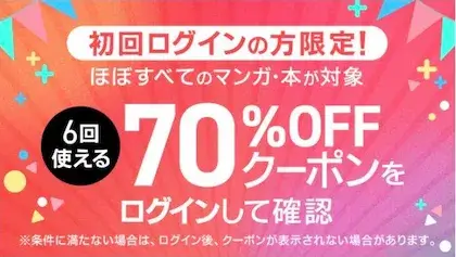 - 初回特典:70%OFFクーポン(最大6回利用可能)