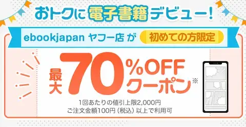 ebookjapan公式ストアでは、新規ユーザー向けの70%OFFクーポンが特に有名です。